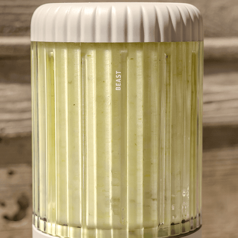 Einfach Zutaten der Reihe nach in den Mixer geben, Taste kurz länger als 1 Sekunde drücken – fertig!
